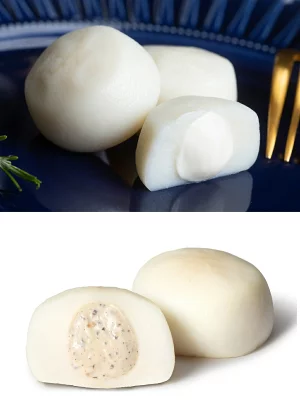 上質なすり身をじっくりと蒸し、ふっくら上品な口当たりに仕上げたチーズボールに蔵王の新鮮な生乳とクリームから つくられたクリームチーズに、ブラックペッパーを加えた蔵王のクリームチーズブラックペッパー。 マイルドな中にピリリとしたアクセントがクセになる「蔵王チーズボールブラックペッパー」と日本人の味覚に あったクセのないクリームチーズで、まろやかで優しい味わいのクリームチーズ「プレーン」を合わせた、2種類 の宮城素材のプレミアムなチーズボールの食べ比べが楽しめるセットです。是非お召し上がりくださいませ。