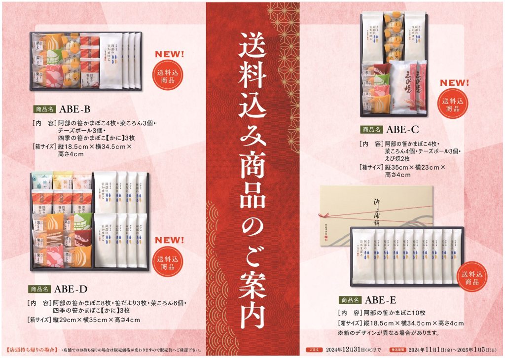 今年の阿部蒲鉾店冬ギフトに「送料込みギフト」が新登場!販売・予約承り中!