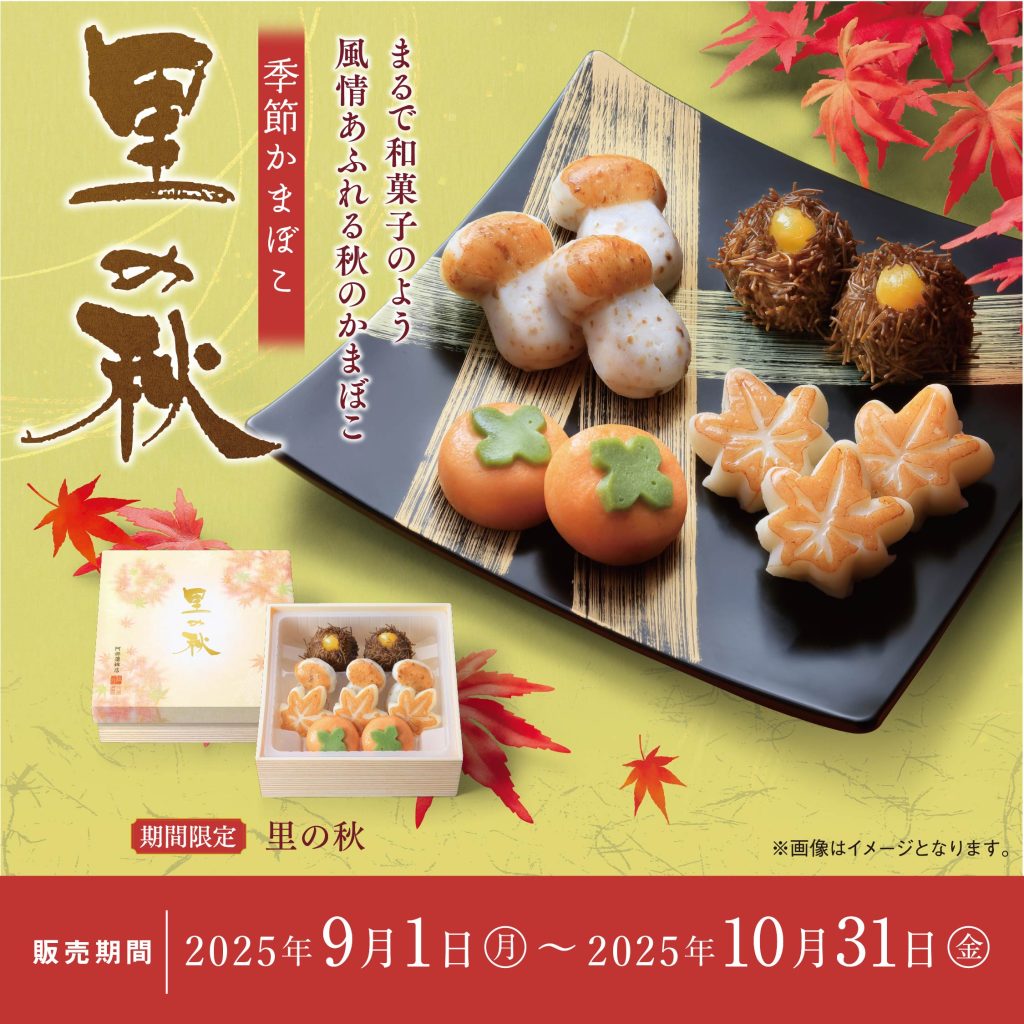 2025年9月1日(月)より、秋限定かまぼこ「里の秋(さとのあき)」の数量限定販売が始まりました。